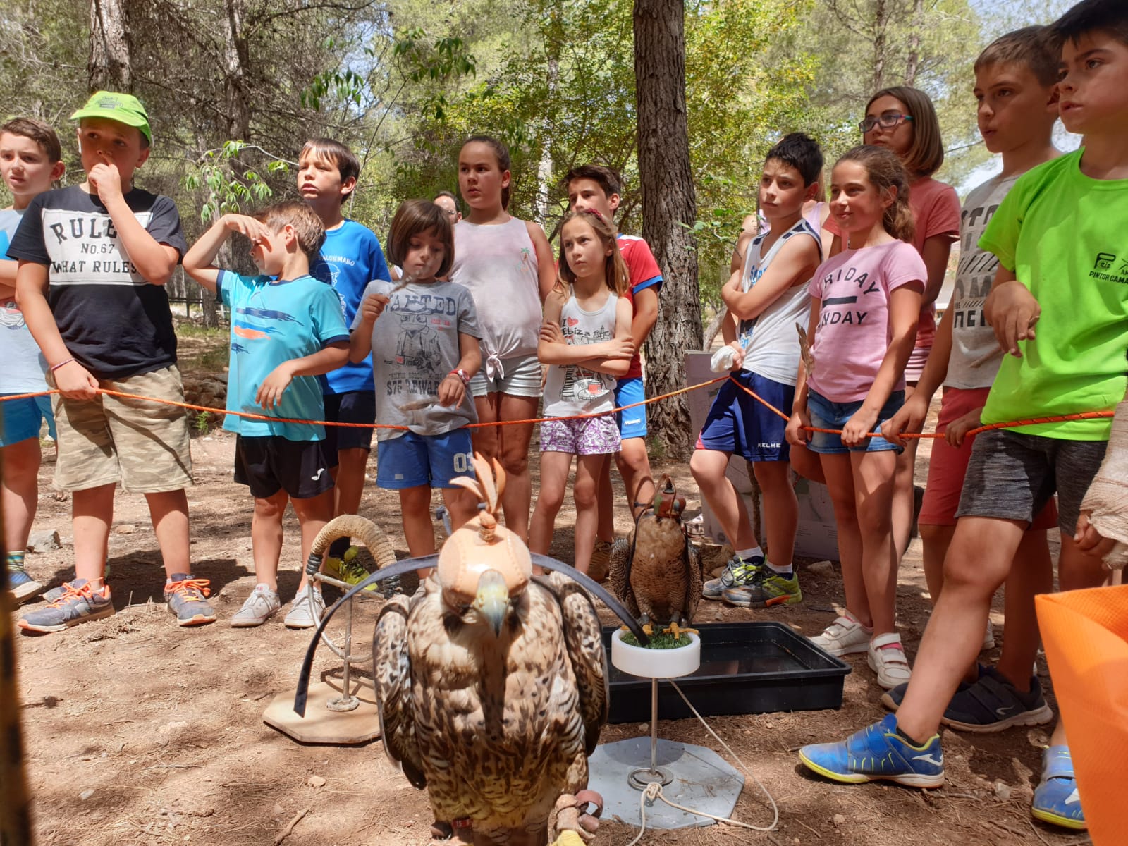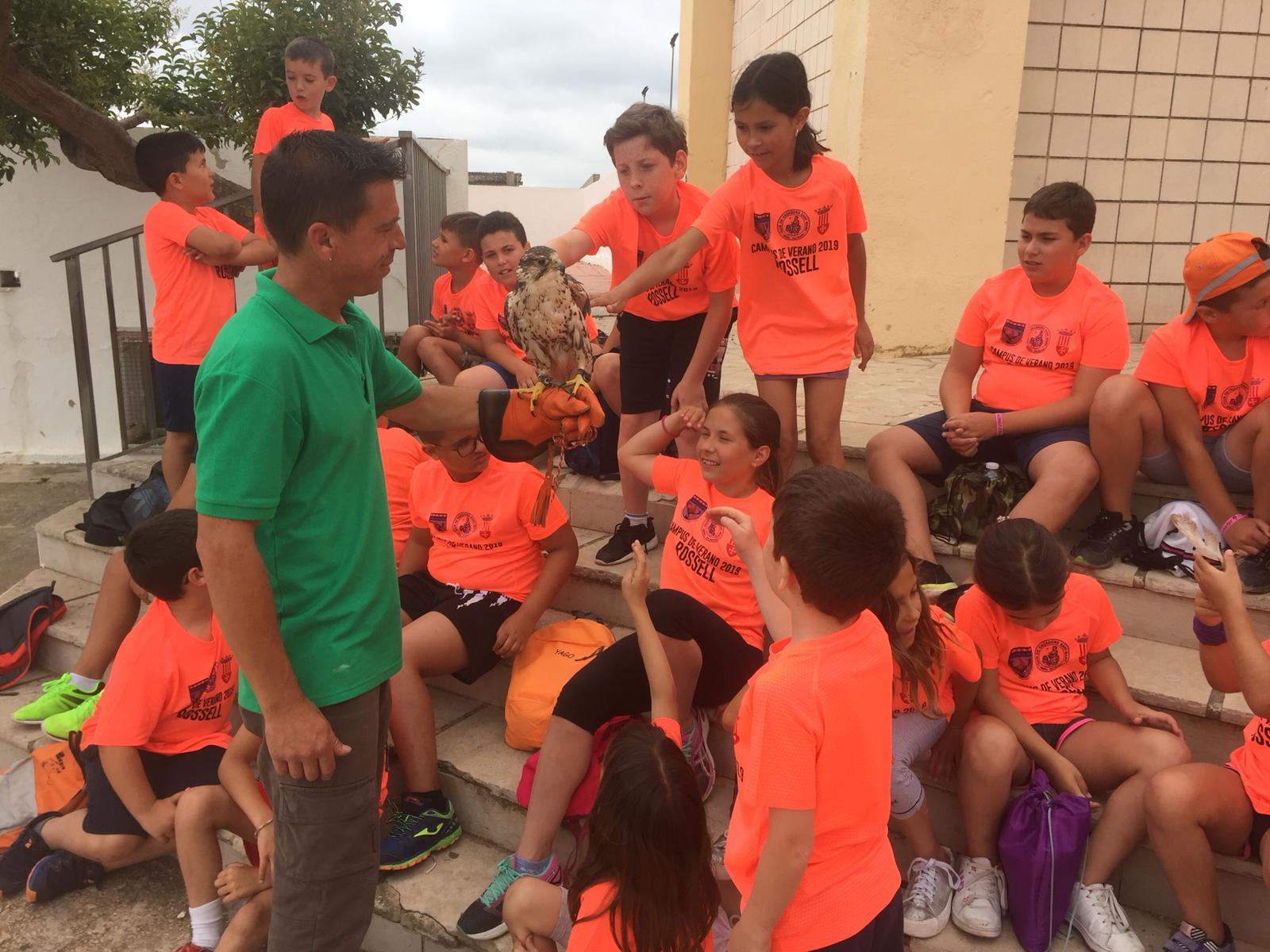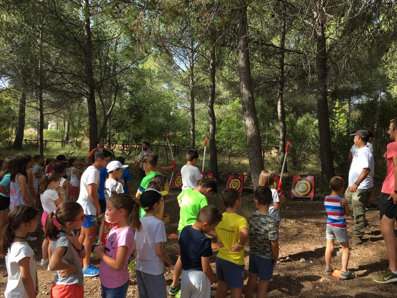 Mientras tanto en Segorbe conocían los juegos de precisión con arco y taller de aves rapaces con la ESCUELA DE CAZA DE LA FEDERACIÓN, sus caras de asombro al establecer cercanía con las aves eran espectaculares.