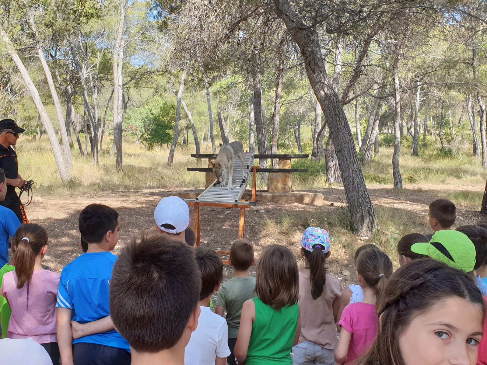 Segorbe: Arranco la mañana con una demostración búsqueda de personas por “UNIDAD CANINA RESCATE CASTELLÓN” el Taller trata de prevenir extravíos en niños y les enseña a cómo actuar si se ven perdidos en el monte.