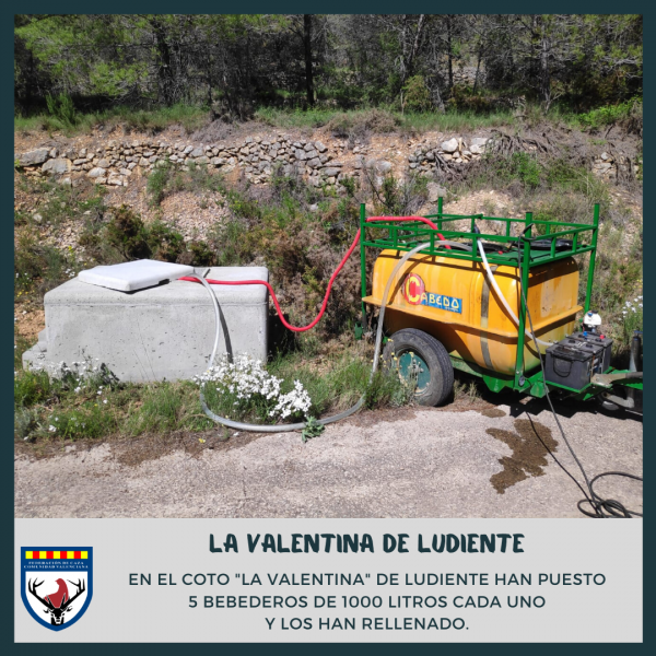 Por su parte, en el coto “La Valentina” de Ludiente han instalado 5 bebederos con 1000 litros de capacidad cada uno y posteriormente los han rellenado.