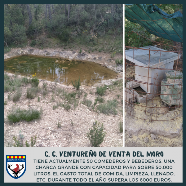 Mientras que el Club cinegético ventureño de Venta del Moro tiene actualmente 50 comederos y bebederos, además de una charca grande, con capacidad para sobre 50.000 litros. El gasto total de comida, limpieza, llenado, etc. durante todo el año supera los 6000 euros.