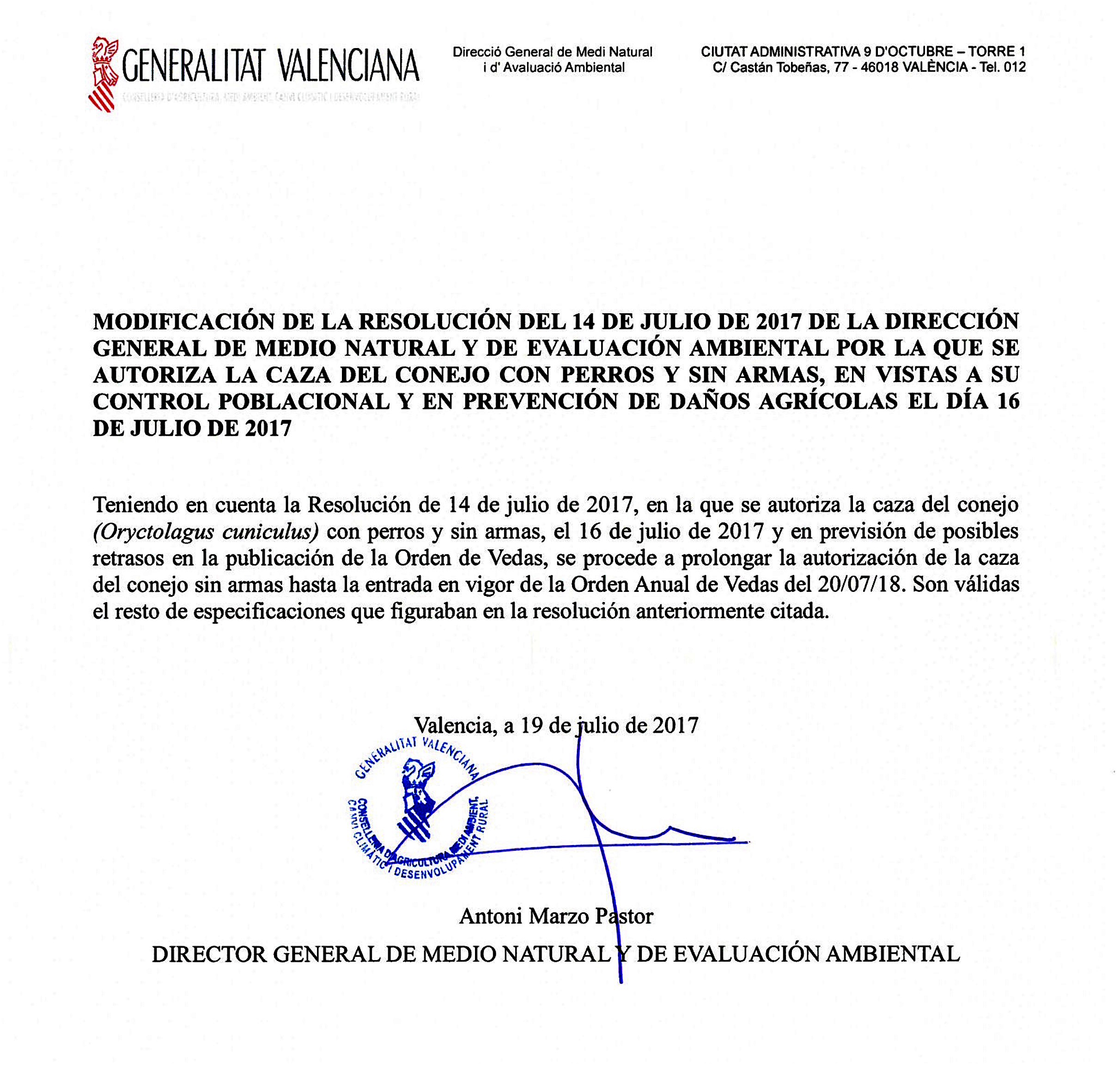 Ante la no publicación, todavía, de la Orden General de Vedas, la Consellería de Agricultura, Medio Ambiente, Cambio Climático y Desarrollo Rural, a petición expresa de la Federación de Caza de la Comunidad Valenciana, ha vuelto a aprobar una nueva resolución de urgencia, en consonancia con la suscrita el pasado viernes, por la que se sigue permitiendo en las zonas comunes la modalidad de caza con perros y sin armas. En este caso la habilitación no es sólo para una día, mañana jueves, sino hasta la publicación oficial de la Orden en el Diario Oficial de la Comunitat Valenciana.