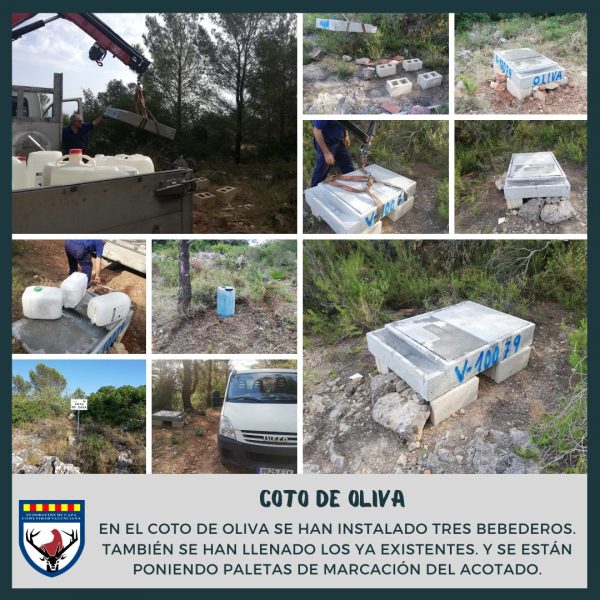 Por su parte, el Club de Cazadores de Oliva ha instalado tres bebederos nuevos para proveer a la fauna de agua. También se han llenado los ya existentes. Además, están poniendo paletas de marcación del acotado para señalización.