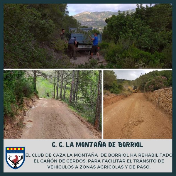 Otro coto que ha realizado mejoras es el Club de Caza La Montaña, que continúa trabajando para mejorar el término de Borriol junto con el Ayuntamiento del municipio. La última acción que se ha llevado a cabo ha sido la mejora del estado de conservación del camino del Barranc de Porcs, para facilitar el tránsito de vehículos a zonas agrícolas y de paso para cazadores y deportistas que hacen uso de este camino.